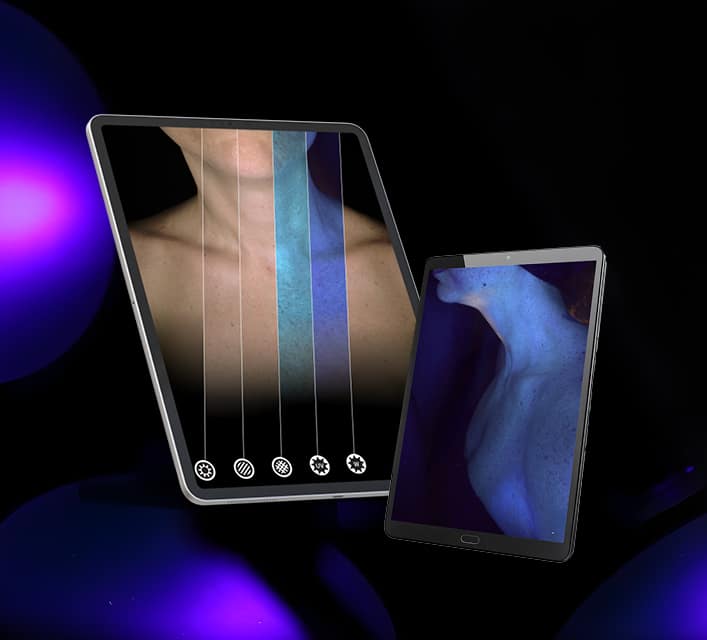 Guiding consultations step by step, Alma IQ empowers you with advanced imaging technology that reveals details of the skin the naked eye cannot detect. In less than 10 seconds, its advanced imaging and multi-light modes capture every detail of the skin, from surface texture to deeper layers.